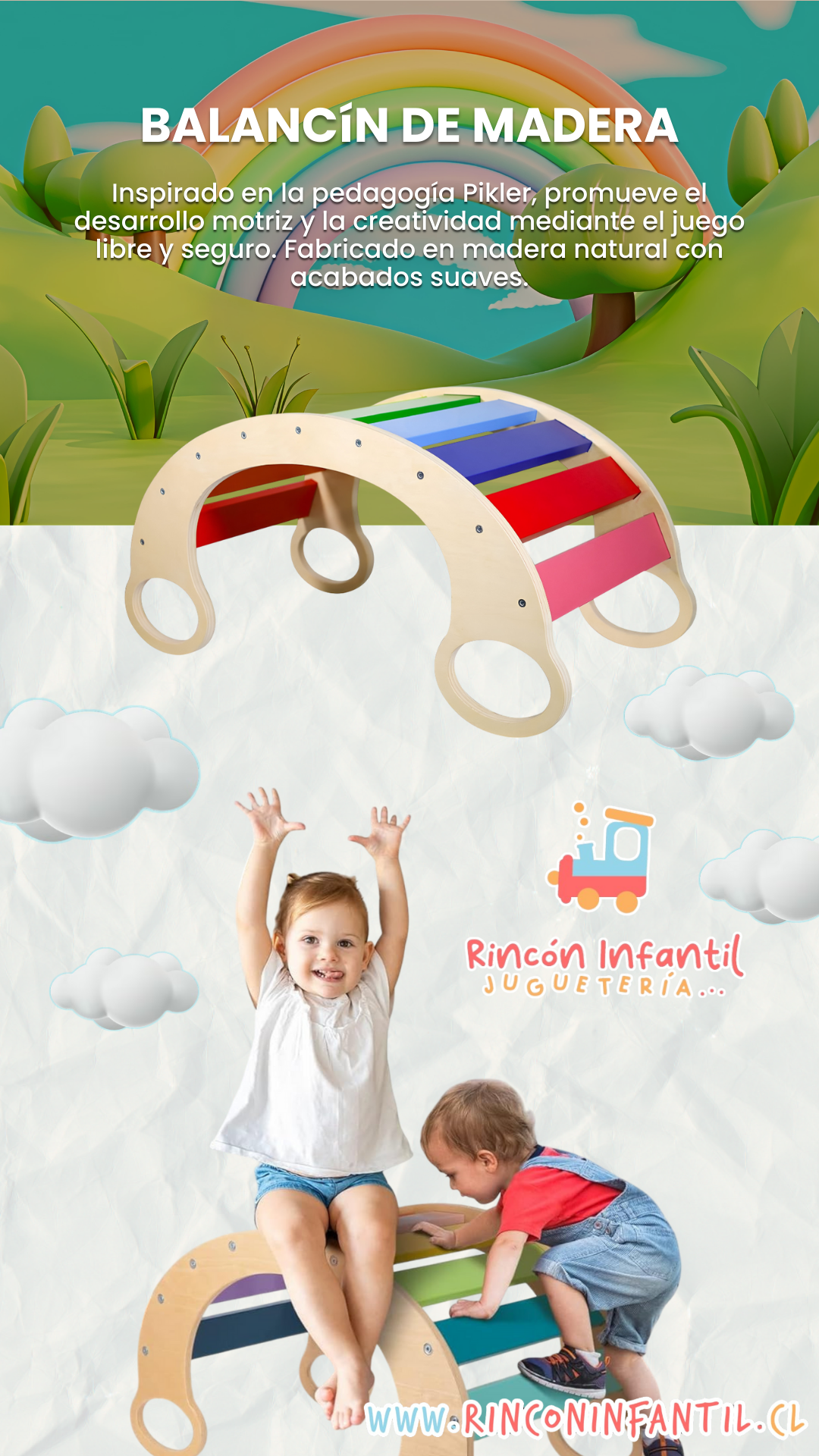 ¡Descubre el corazón de la diversión y el aprendizaje con nuestro Espectacular Balancín Interactivo! Este juguete único no es solo un balancín; su diseño innovador permite que se transforme en puente, túnel, mesa de apoyo y mucho más. Inspirado en los principios educativos de Waldorf y Montessori, este balancín de madera fomenta el juego creativo, el equilibrio, la coordinación y las habilidades motoras en los niños de 3 a 8 años.
